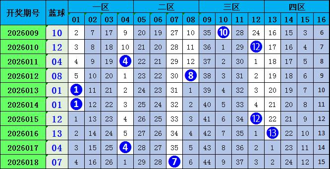 上期蓝球开出号码:01。