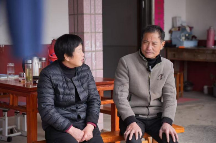 章正应与村民交流寻知交息踪影。何有星摄