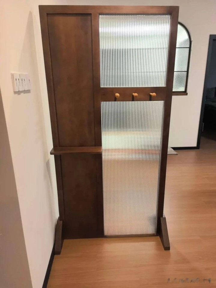 网友@小白 家(80㎡租房党):租房不可打孔、不可定制柜子,就买了一个可转移的屏风圮绝。胡桃木色的温润质感,自带因循又高档的腔调;玻璃把光辉滤成柔焦丝绒,既挡住入户参差,又不挡全屋通透。中间一行实木挂钩,唾手挂外衣、包包、钥匙,外出回家都顺遂;侧边小台面还能放香薰、小摆件,入户典礼感径直拉满。搬家还能带走,租房党径直冲!