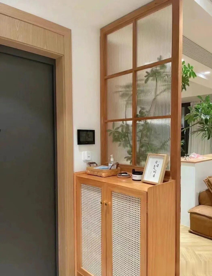 网友@小桃 家(65㎡老屋子):进门即是客厅,墙面狭小没法作念柜子,就选了一面木质格栅和长虹玻璃圮绝,放在进门左侧,刚好挡住客厅视野,又不会皆备遮挡光辉,搭配原木色,慈悲又调节。圮绝下方摆鞋柜,内部也刚好放下日常穿的鞋子,小小的区域,功能一应俱全。