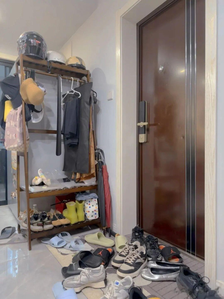 没资历过的东谈主可能会说,无玄关多通透啊!但唯有住过的才懂,全是隐形清贫,尤其关于珍摄整洁和隐秘的东谈主来说,几乎是日常暴击。一开门,客厅的沙发、餐厅的餐桌尽收眼底,小数缓冲空间都莫得。包包、钥匙等日常物品都没所在放。