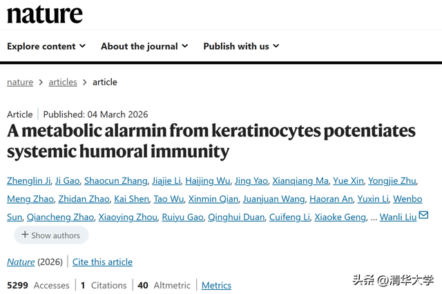 《角质酿成细胞的代谢警报素指点系统性免疫粗犷》(Ametabolicalarminfromkeratinocytespotentiatessystemichumoralimmunity)为题
