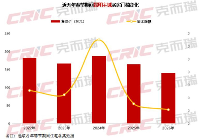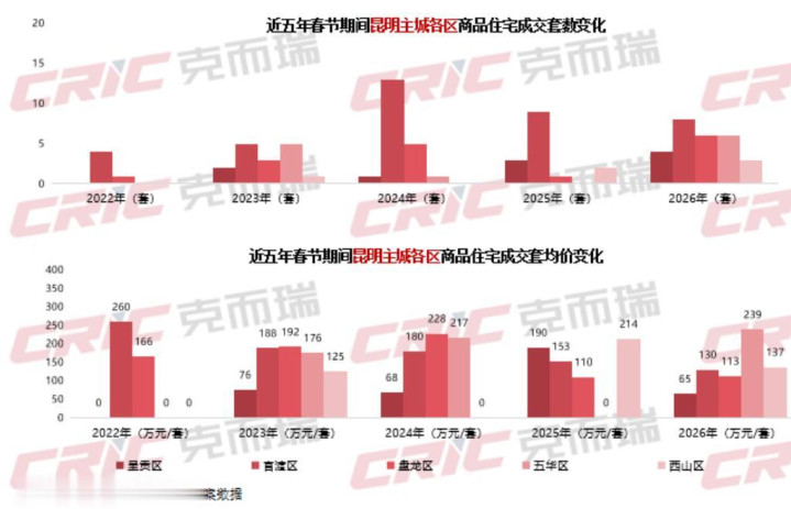 前两周(2026年2月9日-22日),昆明楼市受春节小长假影响,合座呈现量价皆跌的态势。春节假期昆明的住宅备案共计27套,同比飞腾54%,是近五年最佳的一年。