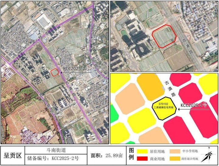 其中一宗供应地皮位于呈贡斗南板块,为KCC2025-2号地块,约25.89亩,紧邻地铁4号线梅子村站旁。