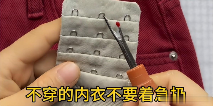 若是你不念念费钱去成衣店去改裤腰的话,其实我方在家也能措置。若是你有闲置不穿的内衣,不错把内衣扣拆解下来,然后缝在裤腰上。