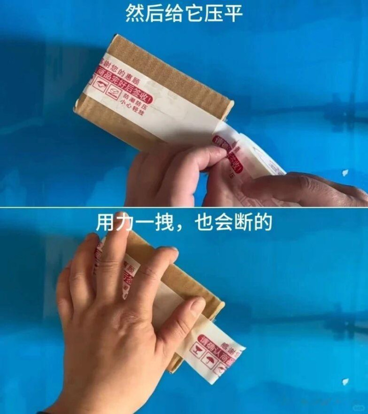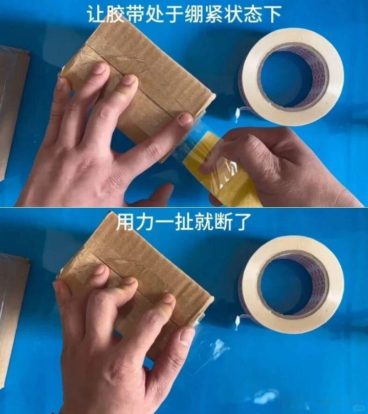 打包纸箱需要用胶带封口,可是手边正值莫得剪刀,也莫得小刀之类的器具,那如安在这样的情况下徒手将胶带撕断呢?