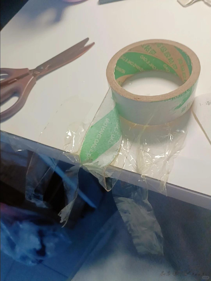 第2种见解是莫得长指甲的一又友不错将胶带拉得长一些,之后将这截胶带对折,之后再用劲一扯,胶带就被扯断了。