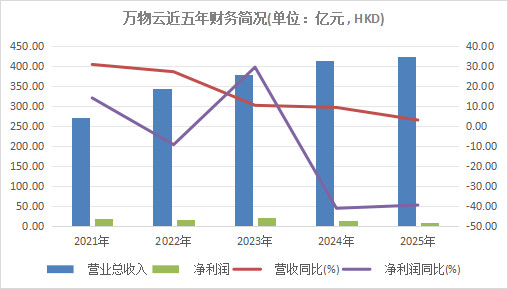 2025年,万物云与母公司万科之间的握续关联往还收入同比减少11.97亿元至22.39亿元,在总营收中占比降至6%,同比下落3.5个百分点。两年内,关联业务收入占比已累计下落7.5个百分点。