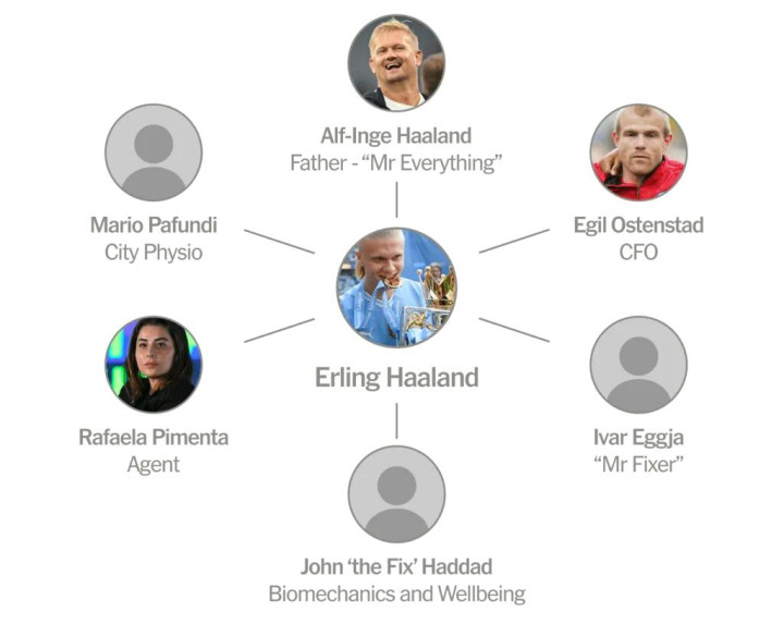 这个体系的中枢是范围不大,险些全由专科精英构成的哈兰德团队。团队更像初创公司,25岁的哈兰德是惟一形状,方针是打造总揽寰宇足坛至少10年的顶级巨星IP,并将其滚动为尽可能多的钞票。