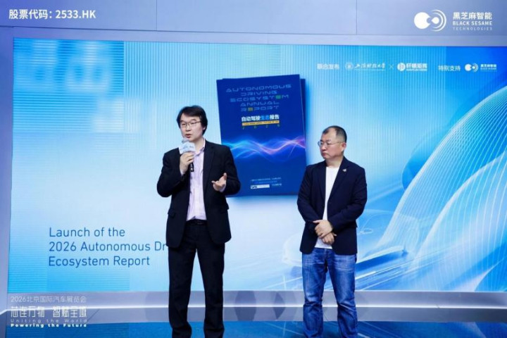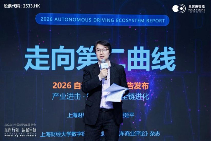4月24日,2026北京海外车展黑芝麻智能展台,上海财经大学数字经济商议院与轩辕矩阵旗下《汽车交易评述》杂志搭伙发布了《2026自动驾驶生态禀报》。禀报夙昔瞻视角勾画出中国自动驾驶规模“贫瘠—进阶—进化”的全景图谱,并明确判断:继新能源第一弧线之后,中国汽车产业已认真投入以智能为中枢驱能源的第二弧线。接下来,两条弧线组成的发展动能将共同重塑中国汽车产业的发展神气、产业链口头与海外市时势位。